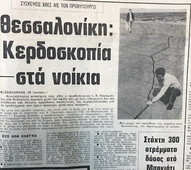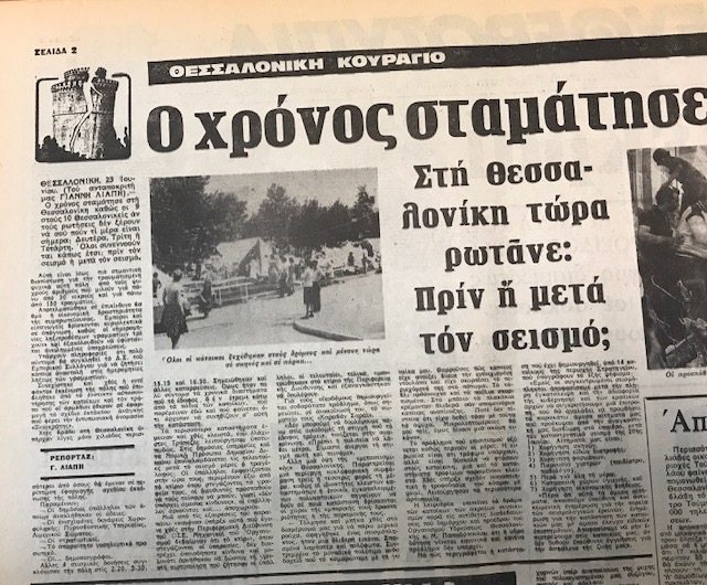 Εκείνο το ζεστό μεσημέρι της Τρίτης 20 Ιουνίου 1978, μια παρέα φοιτητών ξεκινήσαμε από την πλατεία του Χημείου για να πάμε στη φοιτητική λέσχη. Ενας από μας διάβαζε φωναχτά το πρωτοσέλιδο της «ΘΕΣΣΑΛΟΝΙΚΗΣ» στο οποίο η εφημερίδα ρωτούσε τους αρμοδίους: «Γιατί ήταν ΚΑΙ ΑΥΤΟΣ μετασεισμός»; Και δίπλα έγραφε: «5,3 και 4,5 βαθμοί Ρίχτερ οι πιο ισχυρές από τις πολλές χθεσινές δονήσεις».
