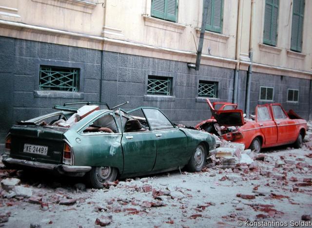 Υ.Γ.: Οι έγχρωμες φωτογραφίες, που μας παραχώρησε το γραφείο Τύπου του ΑΠΘ, τραβήχτηκαν τις πρώτες ημέρες μετά τον σεισμό, από τον αείμνηστο καθηγητή του Τμήματος Γεωλογίας του ΑΠΘ, Κωνσταντίνο Σολδάτο