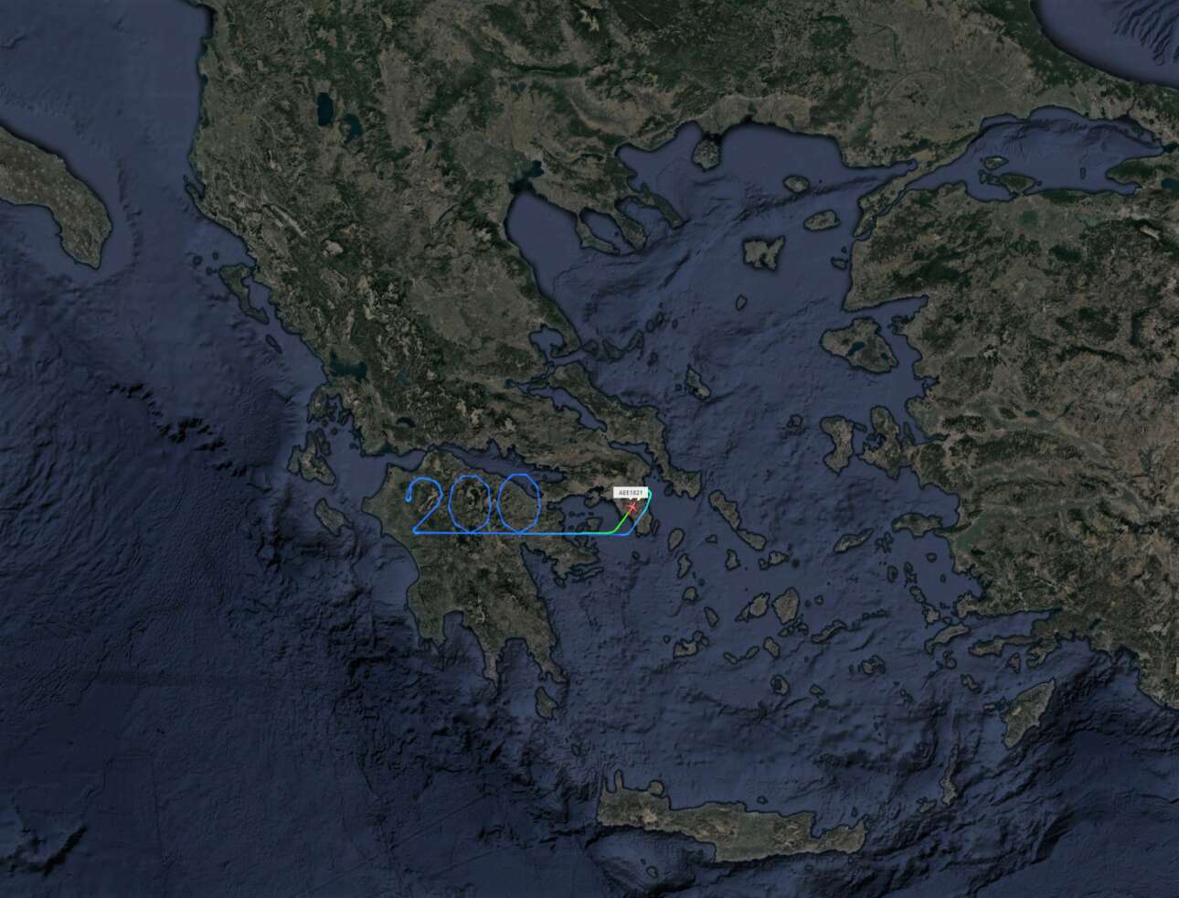 Στον χάρτη η πορεία του αεροσκάφους πάνω από την περιοχή της Πελοποννήσου με το σημαντικό ιστορικό αποτύπωμα και τον πρωταγωνιστικό ρόλο στην Ελληνική Επανάσταση.