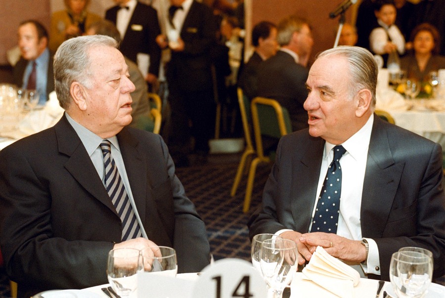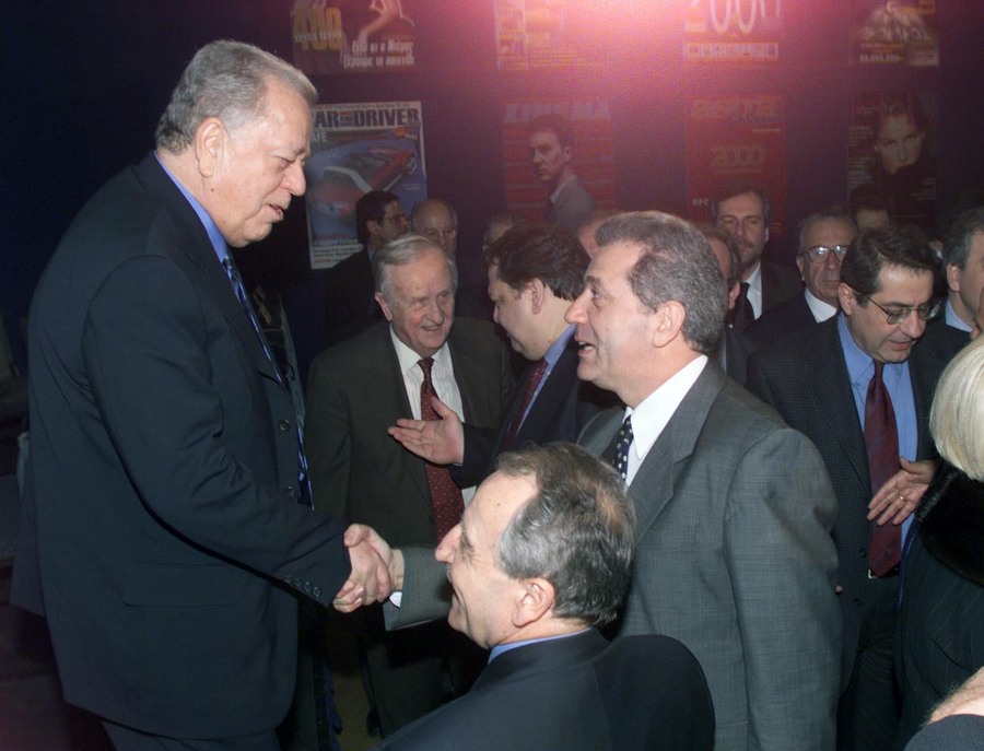 Με τον διοικητή της Εθνικής Τράπεζας Θεόδωρο Καρατζά σε συνέντευξη του τότε Πρωθυπουργού Κώστα Σημίτη σε γεύμα που παρέθεσε προς τιμήν του η Ενωση Ανταποκριτών Ξένου Τύπου (ΑΠΕ)