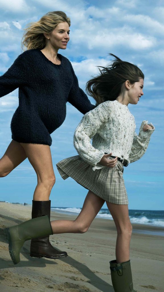 Τέσσερα χρόνια αργότερα, η Μίλερ δείχνει ακόμη πιο όμορφη, γιατί δεν πόζαρε με κάποιο ακραίο στάιλινγκ. Μάλιστα, το πιο glam ρούχο που φοράει είναι ένα χοντρό πλεκτό πουλόβερ από τα νησιά Αραν (στον κόλπο του Γκάλγουεϊ) και ένα μαύρο σλιπάκι. Κάθε γυναίκα που έχει γεννήσει θα σας πει ότι αυτό είναι πραγματικά το είδος του ρούχου με το οποίο μπορείτε να βγείτε από το σπίτι όταν φτάσει, επιτέλους, η ώρα του τοκετού.