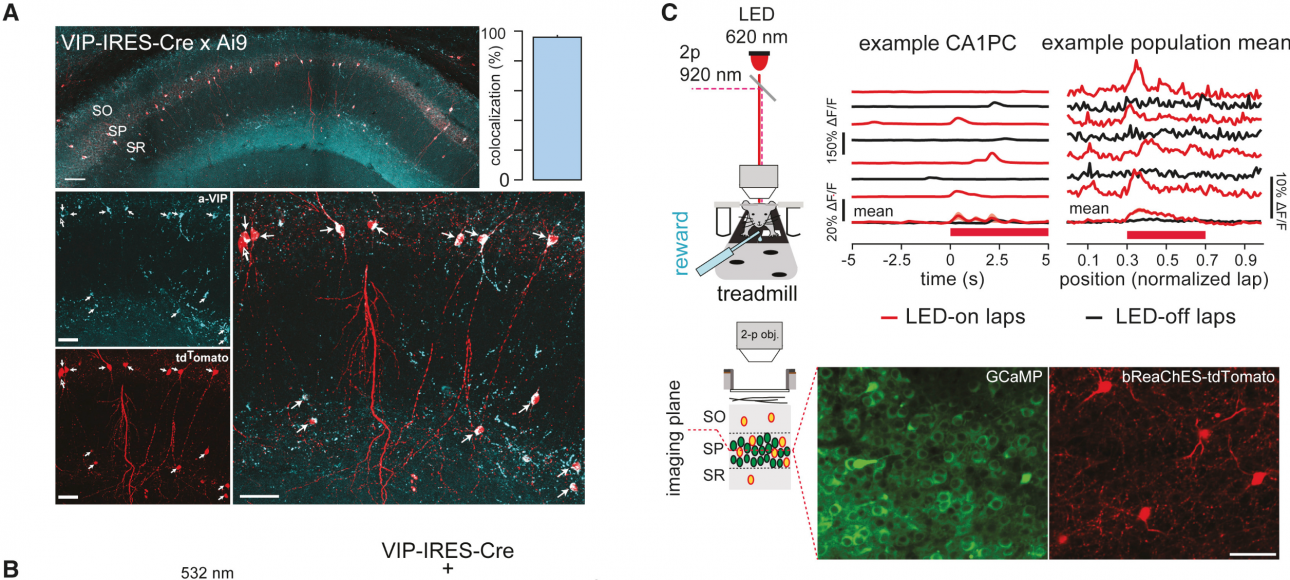 Επόμενος στόχος ήταν η μελέτη μιας συγκεκριμένης κατηγορίας ανασταλτικών κυττάρων. Τα κύτταρα αυτά ονομάζονται VIP, έχουν μελετηθεί ελάχιστα και δεν είχαν εμπλακεί στο παρελθόν σε διαδικασίες μνήμης και μάθησης. Η «δουλειά» τους είναι ιδιαίτερη, καθώς αναστέλλουν (δηλαδή σταματούν) την δραστηριότητα των κυττάρων στα οποία προβάλλουν. Η έρευνα επικεντρώθηκε το κατά πόσο και με ποιο τρόπο τα VIP κύτταρα συμμετέχουν στη δημιουργία και ανάκληση των συγκεκριμένων χωρικών μνημών.