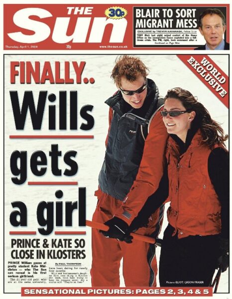Πανηγυρικό πρωτοσέλιδο της εφημερίδας Sun από το μακρινό 2004, με τους δύο πρίγκιπες του Κέιμπριτζ: «Επιτέλους! Ο Γουίλι βρήκε κορίτσι!»