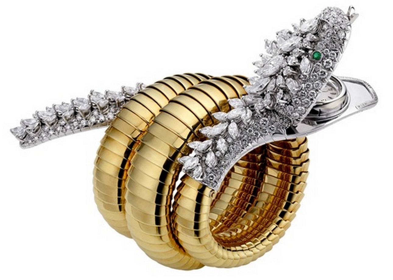 Το φίδι έχει ταυτιστεί με τα κοσμήματα του Bulgari, του διάσημου ρωμαϊκού οίκου με τις ελληνικές ρίζες. Το πρώτο χρυσό βραχιόλι-ρολόι, εμπνευσμένο από την ασπόνδυλη σιλουέτα του ερπετού (το μοντέλο ονομάστηκε Tubogas) δημιουργήθηκε από τους αδελφούς Κωνσταντίνο και Μάριο Μπούλγκαρι το 1940. Εκτοτε το μοντέλο εξελίχθηκε και δημιουργήθηκαν εντυπωσιακά κομμάτια Serpenti, που τυλίγονται γύρω από διάφορα σημεία του σώματος.