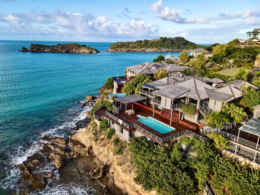 Η βίλα στην Αντίγκουα ήταν το χειμερινό παραθαλάσσιο καταφύγιο του Αρμάνι. Πρόκειται για ακίνητο που προέκυψε από τη μετατροπή δύο άλλων, ανεξάρτητων μεταξύ τους, επαύλεων. Αυτές τις βίλες συνέδεσε ο σχεδιαστής με κεντρική αίθουσα που περιβάλλεται από κιόσκια και βεράντες, όταν τις αγόρασε πριν από αρκετά χρόνια. Σήμερα η βίλα πωλείται στην τιμή των 17,8 εκατ. ευρώ.