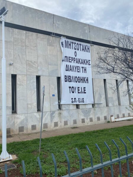 Ομως, όχι: υπήρξε υπαναχώρηση και το πανό ανέβηκε ξανά… Ή, ακριβέστερα, τα πανό. Στα πλαϊνά του κτιρίου, έστεκε ακόμη ένα: «κ. Μητσοτάκη, ο Πιερρακάκης διαλύει την Βιβλιοθήκη του ΕΙΕ». Ακόμη και σήμερα, η ρήξη για τον αριθμό των προσώπων που θα επιστρέψουν στο Εθνικό Ιδρυμα Ερευνών κρατάει το θέμα άλυτο, με αποτέλεσμα να παραμένει σε εκκρεμότητα και η σχετική Κοινή Υπουργική Απόφαση.