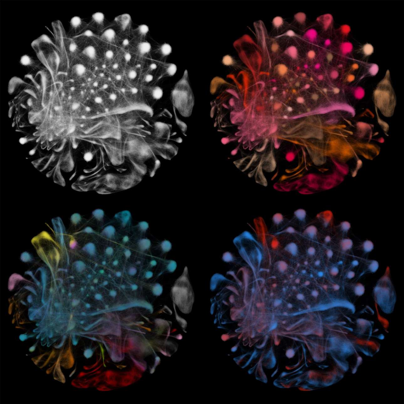 Οπως τη φωτογραφία των Κάρλι Ζίγκλερ, Αλεξ Σάλεκ, Σαίνα Κάρον, Λέσλι Κιν, Βίκτορ Τκάσεβ και Λουκρέζια Κολόν. Αυτά που μοιάζουν με βεγγαλικά (ή ό,τι βλέπει ο καθένας) είναι ο ιός που προκαλεί AIDS στους πιθήκους, ο SHIV, όπως ονομάζεται. Σε καθέναν από τους 4 χρωματιστούς κύκλους, οι επιστήμονες διακρίνουν περίπου 100.000 κύτταρα από μακάκους ρέζους. Στον κάτω και δεξιά κύκλο, τα ερυθρά αιμοσφαίρια δείχνουν ότι ο πίθηκος πάσχει από AIDS. Η διάκριση των ερυθρών και κυανών κυττάρων, βοηθά τους επιστήμονες να ξεχωρίζουν τα κύτταρα που δυσλειτουργούν λόγω της HIV λοίμωξης, παρότι το θηλαστικό παίρνει αντιρετροϊκή αγωγή.