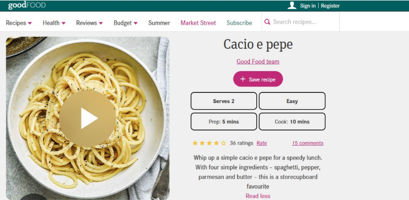 Κλασική αγαπημένη ρωμαϊκή μακαρονάδα, που μπορεί κανείς να βρει σε όλες τις τρατορίες της ιταλικής πρωτεύουσας, η κάτσιο ε πέπε είναι γνωστή για την απλότητά της αλλά και την σχετικά απαιτητική παρασκευή της. Ετσι, η φράση «Φτιάξτε την εκδοχή του cacio e pepe της Good Food για ένα εύκολο και γρήγορο γεύμα» στην ιστοσελίδα Good Food, ενόχλησε πολλούς.