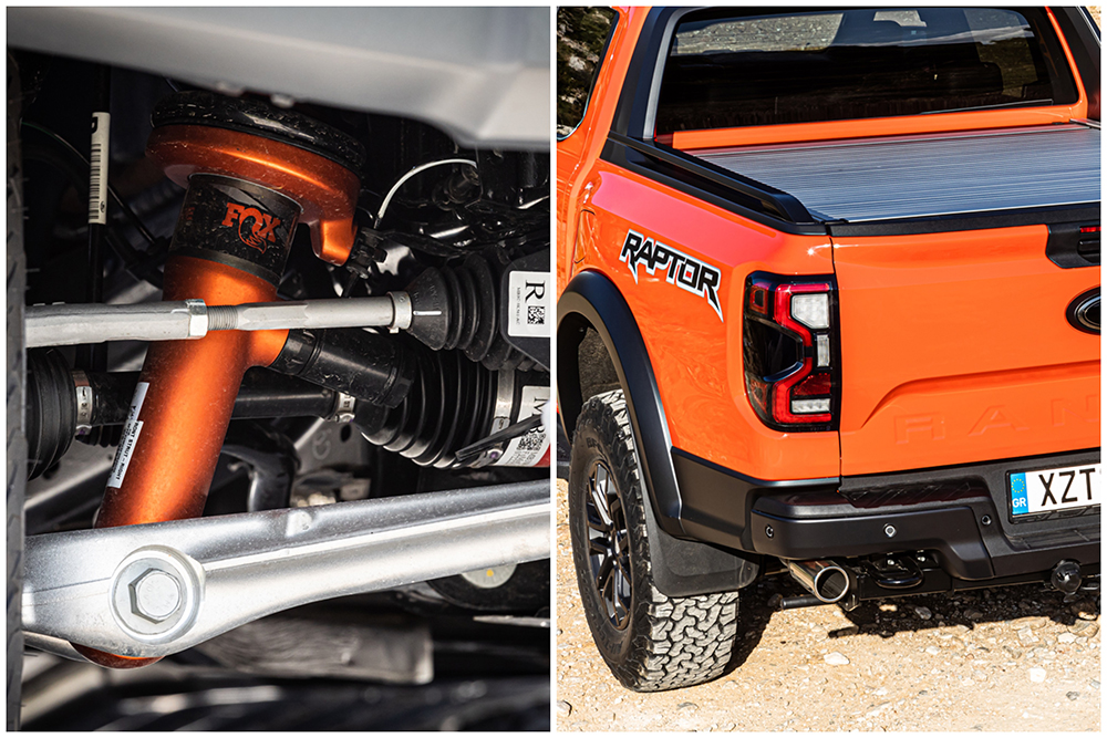 Οι τελευταίες δύο λέξεις κρύβουν το 50% της ικανότητας του Raptor. Είχα οδηγήσει και την προηγούμενη εκδοχή, εκείνη που είχα χαρακτηρίσει ως «τη GT3 των pick up». Πλέον, είναι με ηλεκτρονική βαλβίδα στις μπουκάλες της Fox. Μιας εταιρείας που δεν είναι και τόσο γνωστή στην Ελλάδα, όμως την ξέρουν και οι πέτρες στην αμερικανική αγορά όπου είναι φημισμένες οι ικανότητές της. Τι έχει αλλάξει στο μεταξύ; Αν είσαι πολύ παρατηρητικός, υπάρχει μια ελαφρώς καλύτερη, πιο ομαλή στην επαναφορά της ανάρτησης (rebound) σε απότομα εγκάρσια που συναντάς στην άσφαλτο.