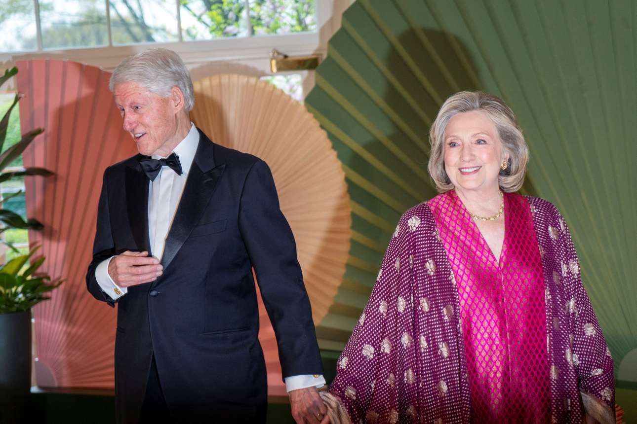 Ο μόνος πρώην πρόεδρος των ΗΠΑ που παρακάθισε στο δείπνο ήταν ο Μπιλ Κλίντον, που συνοδευόταν βέβαια από τη Χίλαρι, η οποία φορούσε ένα απαστράπτον καφτάνι σε φούξια και χρυσούς τόνους. Οι δυο τους δεν απέφυγαν καθόλου τους δημοσιογράφους, με τους οποίους έκαναν «πλακίτσα».