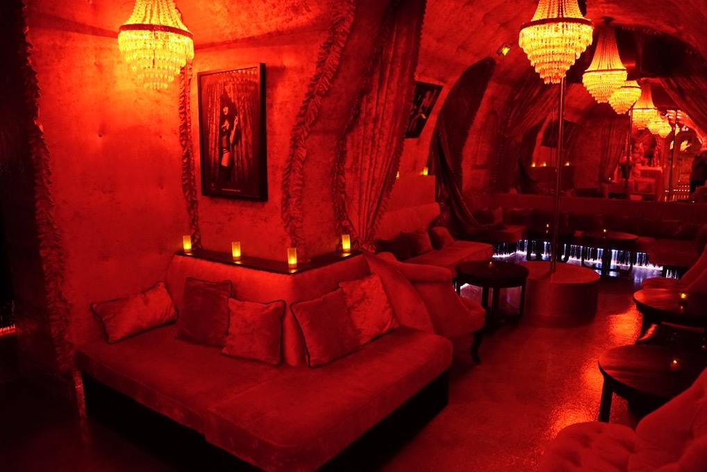 Μια σκάλα ντυμένη με βελουτέ μοκέτα οδηγεί σε έναν υπόγειο λαβύρινθο, κατακόκκινο και αμυδρά φωτισμένο, με μπαρ και εσοχές ντυμένες επίσης με βελούδο, όπου μια μελαχρινή Γαλλίδα με ψηλοτάκουνες γόβες, ελέγχει τα πάντα από το «μπουντουάρ» της, γράφει στους The Times ο Μάθιου Κάμπελ.