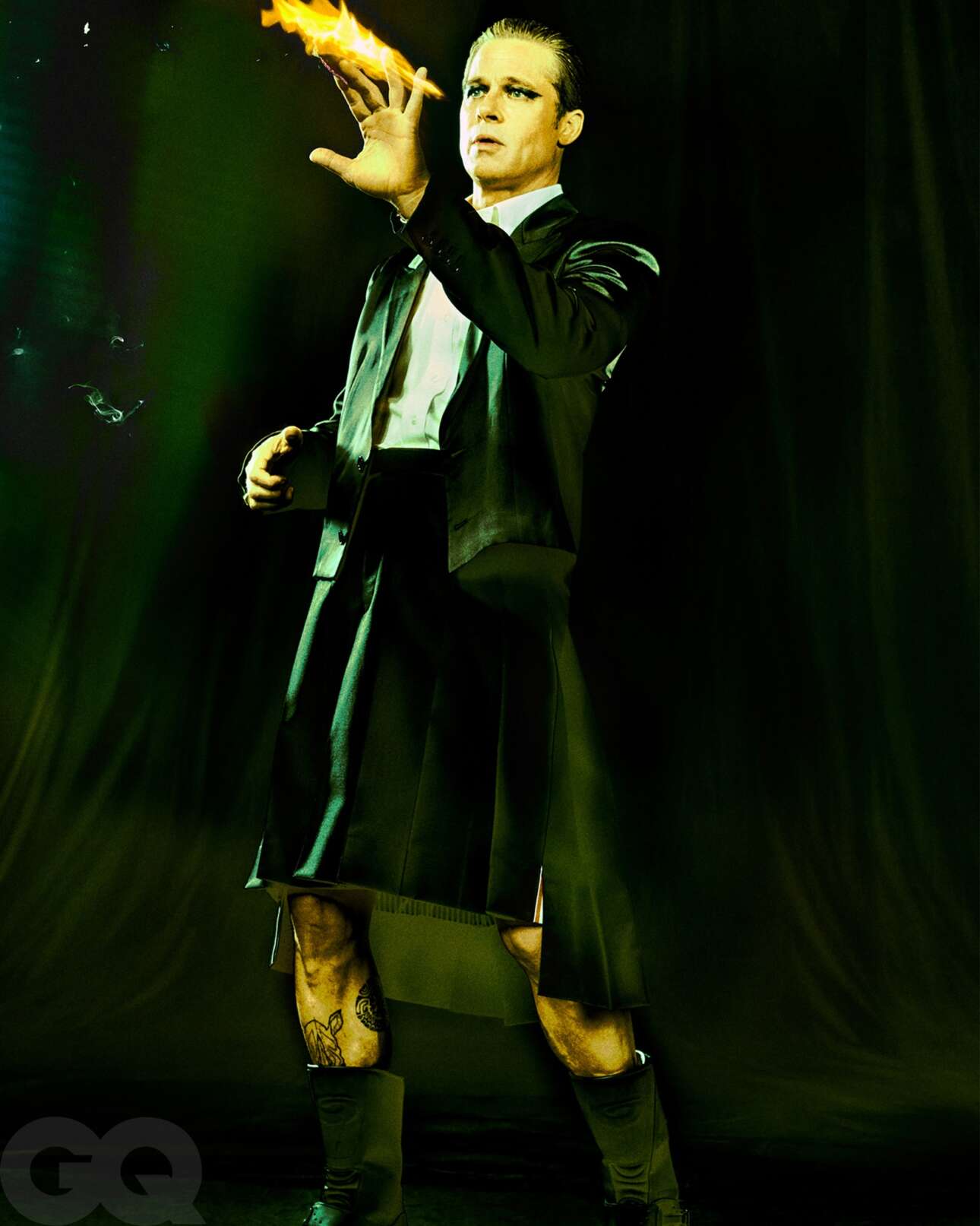Παραδόξως, το concept της φωτογραφίας του εξωφύλλου μπορεί να είναι «θανατερό» πλην όμως το λιγότερο εντυπωσιακό. Στη συνέντευξη, ο Μπραντ Πιτ εμφανίζεται σαν κέρινο ομοίωμα του Τζιμ Μόρισον, που μόλις έχει πάθει εγκεφαλικό, λίγο παρακάτω πιπιλάει το δάχτυλό του ντυμένος με χτυπητό κροκί κοστούμι για σαφάρι και ξαπλωμένος άνετα σε ένα σκηνικό, που θυμίζει πύρινο δειλινό στην Αφρική (ή το σημείο όπου έθαψαν τον Μπίλι Μπατς στο «Goodfellas»), αλλού σαν τον 14ο καλύτερο μάγο της Τσεχικής Δημοκρατίας, αλλά και με μαύρο σατέν ταγιέρ (με φούστα, δηλαδή, αλλά δεν είναι η φούστα που ενοχλεί), μπότες, τατουάζ στη γάμπα και βαρύ μακιγιάζ, να κάνει κόλπα με φωτιά στα δάχτυλα.