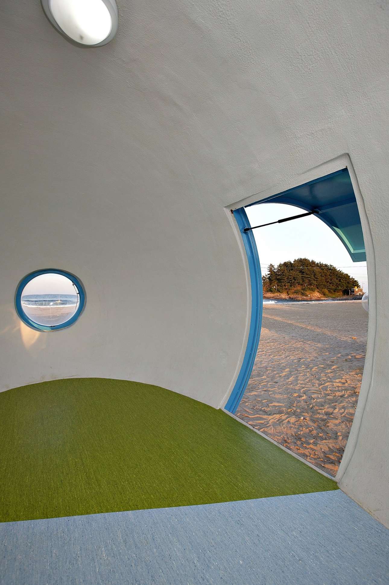 Το σχέδιο της νοτιοκορεατικής εταιρείας Yoon Space Design δεν δημιουργεί τον ιδανικό χώρο για σπίτι, αλλά σίγουρα προσφέρει έναν μοναδικό χώρο. Είναι μία ωοειδής κατασκευή που πάει ένα βήμα παραπέρα τη λειτουργικότητα μίας σκηνής. Το Albang («δωμάτιο – αβγό») είναι κατασκευασμένο στο χέρι, από πολυστυρένιο, υλικό που είναι φτηνό, ελαφρύ και φιλικό προς το περιβάλλον, ενώ το εξωτερικό του είναι αδιάβροχο –γι’ αυτό ταιριάζει σε μία παραλία. Οι σχεδιαστές του ήθελαν να δημιουργήσουν έναν όσο το δυνατόν μεγαλύτερο χώρο με όσο το δυνατόν λιγότερα αντικείμενα.