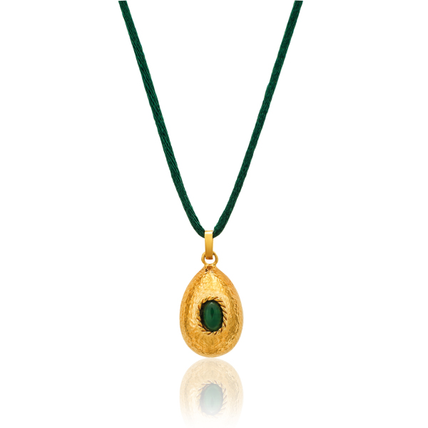 Τα κρεμαστά αβγά στον λαιμό είναι ίσως το πιο στιλάτο εποχικό μενταγιόν. Φυσικά δεν φοριούνται μόνο Πάσχα. Τα αβγά του Ζολώτα επίσης, είναι από τα πλέον κλασικά τέτοια μενταγιόν. Το συγκεκριμένο σχέδιο είναι από σφυρήλατο επιχρυσωμένο ασήμι με αχάτη