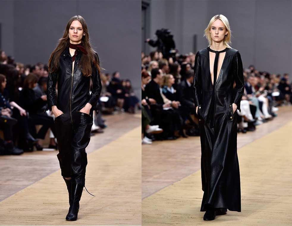 Η εταιρία Chloe, που έως τώρα φημίζεται για τα αέρινα, θηλυκά ρούχα, για τη νέα σεζόν άντλησε έμπνευση από την πρώτη γυναίκα που έκανε τον γύρο του κόσμου με μοτοσικλέτα και δημιούργησε μια συλλογή με έντονες αναφορές στην «μηχανόβια» κουλτούρα, με το δέρμα να επικρατεί σχεδόν παντού, από τα φορέματα μέχρι ολόσωμες φόρμες, συνδυασμένο με διαφανείς μπλούζες σε γήινους τόνους.