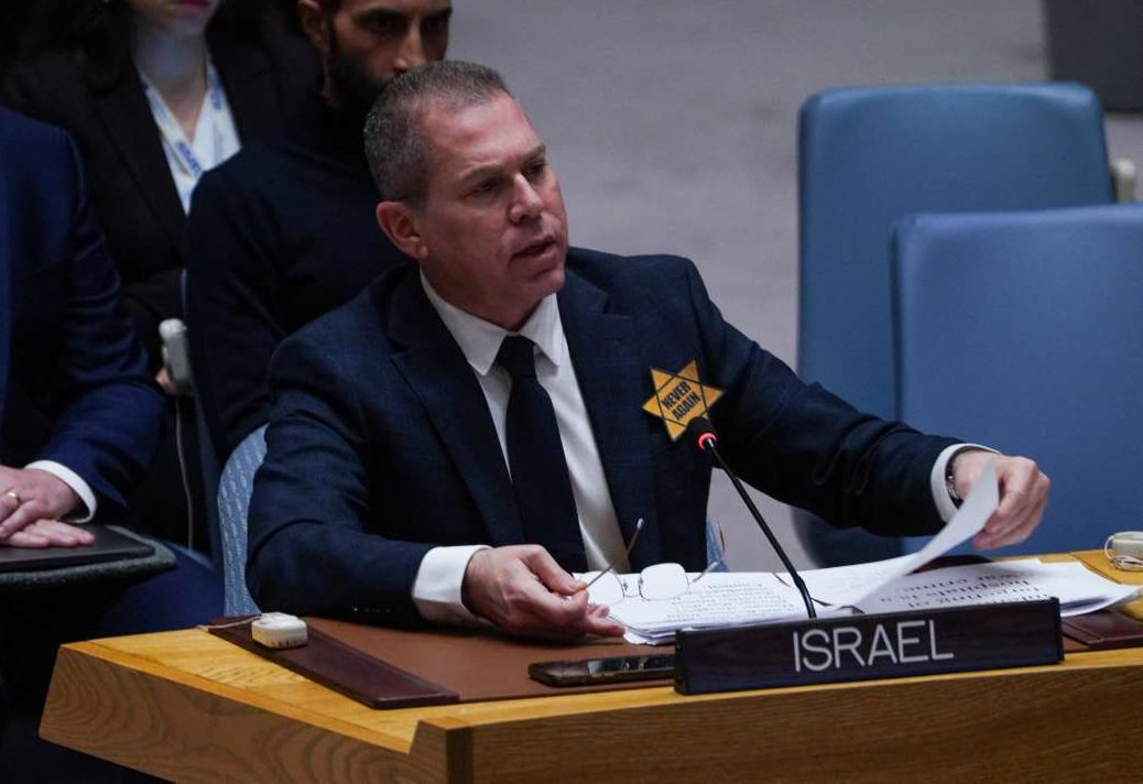 «Οπως οι παππούδες μου, όπως οι παππούδες εκατομμυρίων Εβραίων, από σήμερα η ομάδα μου κι εγώ θα φοράμε κίτρινα αστέρια» δήλωσε ο Ερντάν στις 31 Οκτωβρίου στην έδρα του ΟΗΕ στη Νέα Υόρκη. Σηκώθηκε όρθιος για να βάλει στο πέτο του κοστουμιού του το κίτρινο αστέρι με τις λέξεις «Never again» (ποτέ ξανά) παραπέμποντας στο κίτρινο αστέρι που είχαν επιβάλει στους Εβραίους οι Ναζί. «Θα φοράμε αυτό το αστέρι μέχρι να ξυπνήσετε και να καταδικάσετε τις θηριωδίες της Χαμάς», πρόσθεσε.