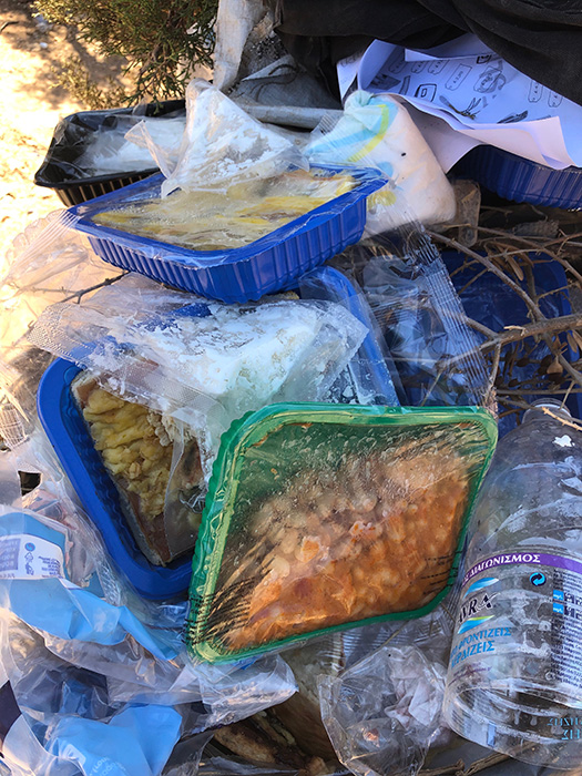 Αλλά δεν είναι μόνον αυτό: σε πρόσφατη επίσκεψη των ανθρώπων της οργάνωσης στη Σάμο βρέθηκαν μερίδες φαγητού πεταμένες. «Κατ’ αρχάς φαίνονται αλλοιωμένες κατά κάποιον τρόπο, και πρόκειται για μερίδα που κοστολογείται με 5,01 ευρώ εκάστη. Είτε είναι κοτόπουλο είτε κάτι άλλο, το οποίο δεν τρώγεται, φαίνεται μουχλιασμένο, πεταμένο. Δεν μπορεί να πει κανείς ότι μπορεί να ξοδευτεί ένα τέτοιο ποσό για μία τέτοια μερίδα. Είναι δυσανάλογο το ποσό…».