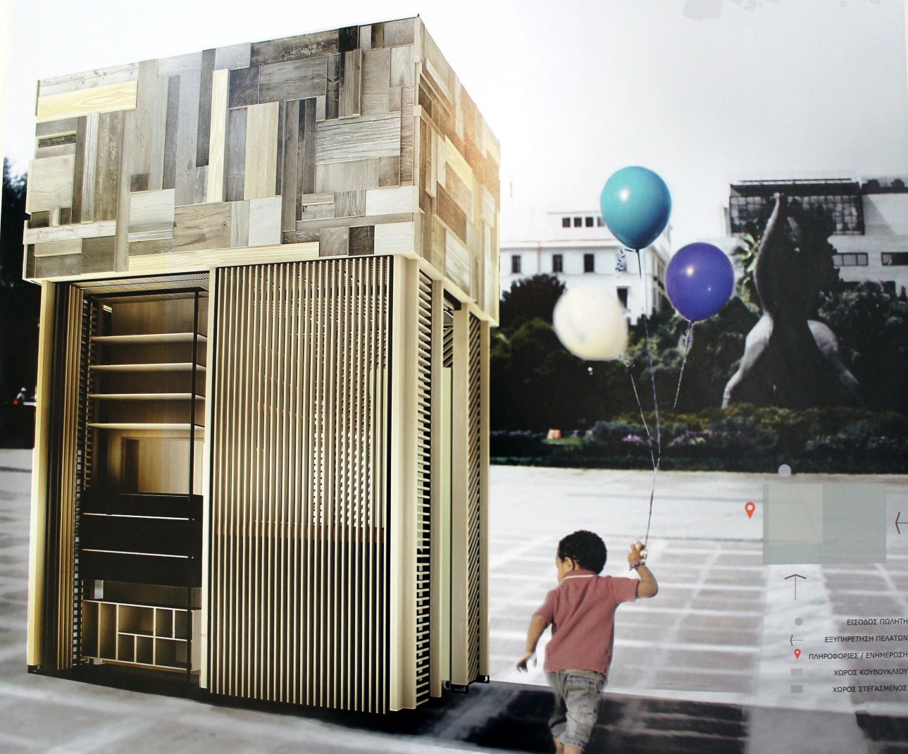 Για την συγκεκριμένη έκθεση τονίζει πως «ειδικά, το αντικείμενο του διαγωνισμού του Δήμου της Αθήνας λειτούργησε ελκυστικά, καθώς το περίπτερο αποτελεί μεν μια μικρής κλίμακας δομή, ωστόσο “πανταχού παρούσα” στον αστικό ιστό».