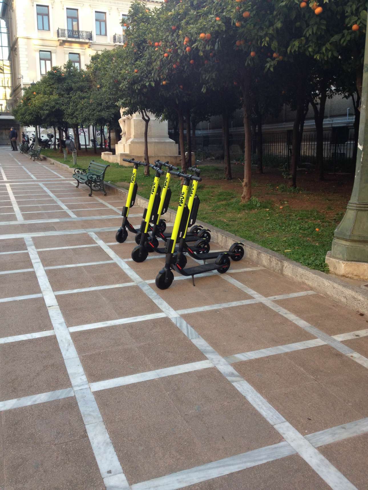 Και ξαφνικά, όπου και αν γυρίσεις το βλέμμα, σε κάθε πιθανό και απίθανο σημείο της πόλης, πέφτεις πάνω σε ένα ή και περισσότερα κομψά πατίνια – σκούτερ, που σε περιμένουν να τα ξεκλειδώσεις ηλεκτρονικά μέσα από έναν ειδικό κωδικό, να πας όπου θέλεις μαζί τους, και όταν ολοκληρωθεί ο διαθέσιμος χρόνος της βόλτας, να τα αφήσεις κάπου για να τα πάρει ο επόμενος -σε δύο τροχούς- ταξιδιώτης. Τα συναντήσαμε να στέκουν υπερήφανα μπροστά από την Παλιά Βουλή, έξω από το Μετρό «Μέγαρο Μουσικής», στην περιοχή Ψυρρή που ευτυχώς αναβίωσε με μεγάλη επιτυχία τη νυχτερινή ζωή της, και σε πολλά ακόμη σημεία. Στον λεπτό κορμό του, το κάθε πατίνι, μας πληροφορεί ότι είναι σχεδιασμένο στην Καλιφόρνια.