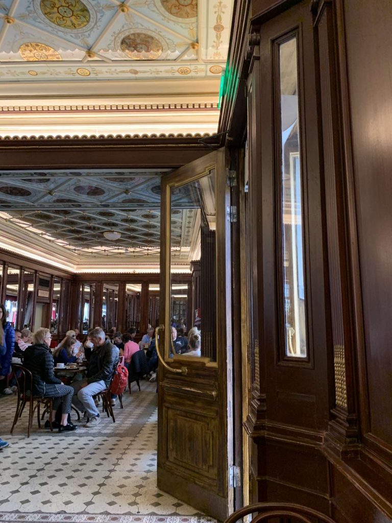 Σε αντίθεση με αυτά όμως, η Παλιά Πόλη του Βίλνιους είναι παραμυθένια, ανέπαφη, μεσαιωνική. Γεμάτη εκκλησίες με μια ιδιαίτερη αρχιτεκτονική που συνδυάζει γοτθικές, αναγεννησιακές, μπαρόκ, νεοκλασικές επιρροές. Σας προτρέπω να εντοπίσετε την οδό Literatu, ένα δρομάκι στενό που οι τοίχοι δεξιά-αριστερά είναι διακοσμημένοι με αφιερώματα σε συγγραφείς, ποιητές, φιλολογικές παρέες, μεταφραστές. Στο σημείο αυτό μας έπιασε μια βροχή, μα τι βροχή! Βροχή, βροχένια! Αλλά, όσοι με διαβάζετε χρόνια ίσως γνωρίζετε, ότι κάνω τη χαρά του Ινδιάνου για τη βροχή. Πολύ δε περισσότερο αφού έγινε η αφορμή για να χωθούμε κάτω από τις ριγέ τέντες, του πιο όμορφου μπιστρό, με το όνομα «Saint Germain».