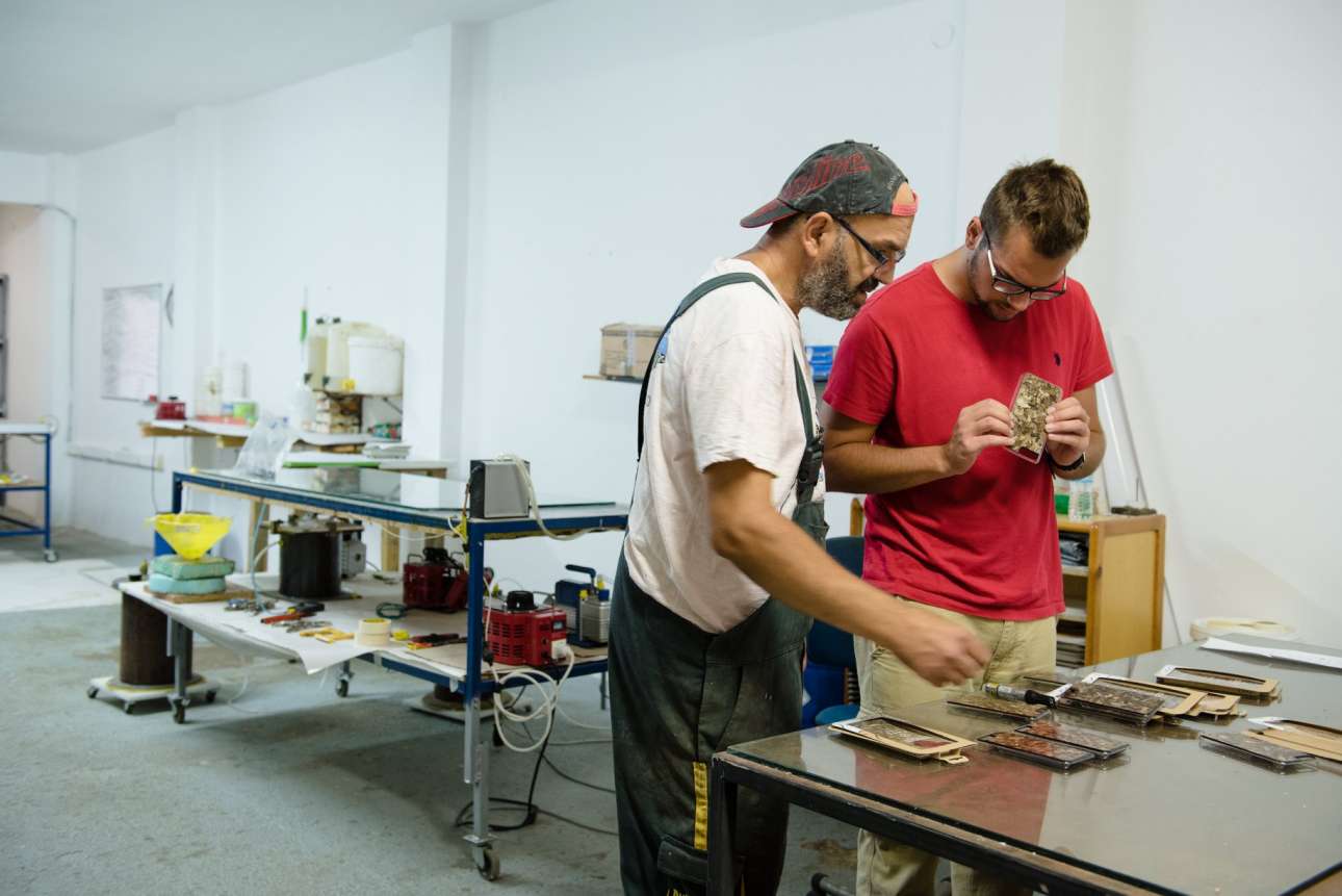 Στο μεταξύ, μελετούν εκεί στην Phee και δοκιμάζουν αντίστοιχες «μοριοσανίδες» με τα κατάλοιπα του καφέ ή με πευκοβελόνες. Ακόμη και με υπολείμματα από συμπιεσμένα ελληνικά βότανα έχουν δοκιμάσει την συμπίεση σε μια επιφάνεια, χρηστική. Έχουν συνεννοηθεί, αντίστοιχα, για τα απόβλητα μονάδων που παρασκευάζουν αιθέρια έλαια. «Πιλοτικά προσπαθούμε να το δοκιμάσουμε σε επίπεδο υλικών συσκευασίας», μου λέει. Ή να διευρύνουν την χρήση και σε πιο καθημερινά χρηστικά προϊόντα: είδη γραφείου, ατζέντες, πορτοφόλια, κοσμήματα. Ακόμη και σε έπιπλα.