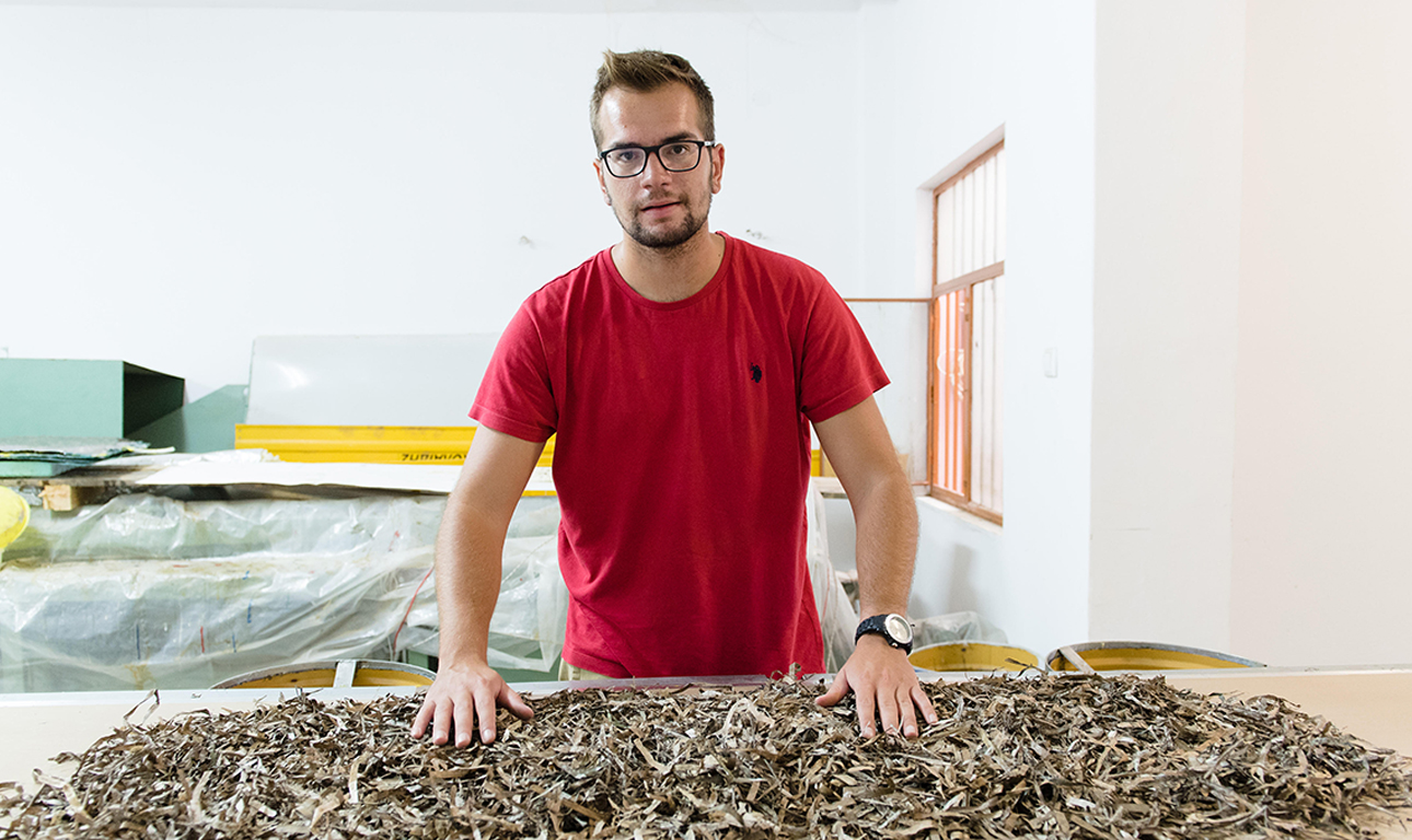Η τεχνογνωσία του Νίκου Αθανασόπουλου μαζί με το επιχειρηματικό όραμα του Σταύρου Τσομπανίδη συναντήθηκαν πάνω από ένα τσουβάλι με άχρηστα φύκια. Κι εκεί ο πρώτος έβαλε σε εφαρμογή αυτό που… μπορούσαν να κάνουν. Ήτοι, μια μοριοσανίδα από φύκια, μονωτική και στέρεα, που θα μπορούσε να χρησιμοποιηθεί ως συμπαγές υλικό. «Έμενε να επιταχυνθεί η διαδικασία. Καθώς στις επιχειρήσεις ο χρόνος είναι το χρήμα».
