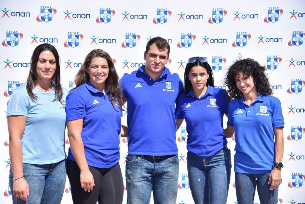 Κρίστυ Αναγνωστοπούλου (Δισκοβόλος), Σταματία Σκαρβέλη (Σφύρα), Πάνος Γαβριήλ (Διευθυντής Εταιρικής Επικοινωνίας ΟΠΑΠ), Βασίλης Σεβαστής (Γενικός Γραμματέας ΣΕΓΑΣ), Μιχάλης Αναστασάκης (Σφύρα), Ραφαέλα Σπανουδάκη (Σπρίντερ 100 μ. και 200 μ.), Γκλόρια Πριβιλέντζιο (Μαραθωνοδρόμος), Γιάννης Κουτσιώρας (Εθνικός Προπονητής ΣΕΓΑΣ)