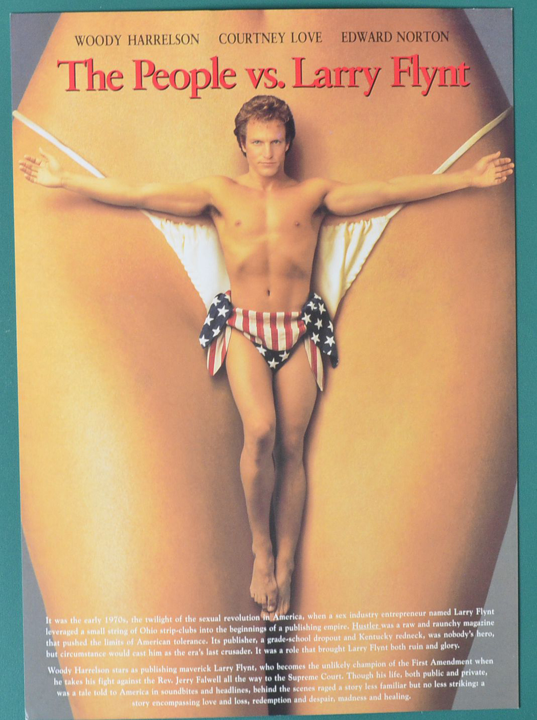 Είναι απορίας άξιον ότι σε όλη τη συζήτηση για την αφίσα της Ελίνας Ψύκου δεν ακούστηκε μια προηγούμενη «σταύρωση»: εκείνη του Γούντι Χάρελσον πάνω σε αιδοίο για την ταινία του Μίλος Φόρμαν «Υπόθεση Λάρι Φλιντ» (1996). Σύμφωνα με την Αμερικανική Κινηματογραφική Ενωση, την Επιτροπή δηλαδή, που είναι αρμόδια για να αποφασίσει τι επιτρέπεται εντός των ηθικών ορίων, συνιστούσε μια «προβοκατόρικη εικόνα». Γι’ αυτό και απαγορεύτηκε στις Ηνωμένες Πολιτείες (αντιθέτως, η αφίσα κυκλοφόρησε κανονικά σε άλλες χώρες χωρίς αντιδράσεις). Ο Φόρμαν δήλωνε παράλληλα ότι ο πρόεδρος της Ενωσης τού είχε εξομολογηθεί τον φόβο του «μήπως αναζωπυρωθούν οι συντηρητικές απόψεις της κοινωνίας». Ολα αυτά για μια ταινία που σχολίαζε εμμέσως τον αγώνα της ελευθερίας του λόγου και του Τύπου στις ΗΠΑ κατά τις δεκαετίες 1970 και 1980. Σε πρώτο πλάνο χρησιμοποιούσε την άνοδο του Λάρι Φλιντ ως εκδότη του περιοδικού «Hustler» και τις δικαστικές περιπέτειές του προς υπεράσπιση του πορνογραφικού περιεχομένου του πασίγνωστου εικονοκλαστικού περιοδικού του.