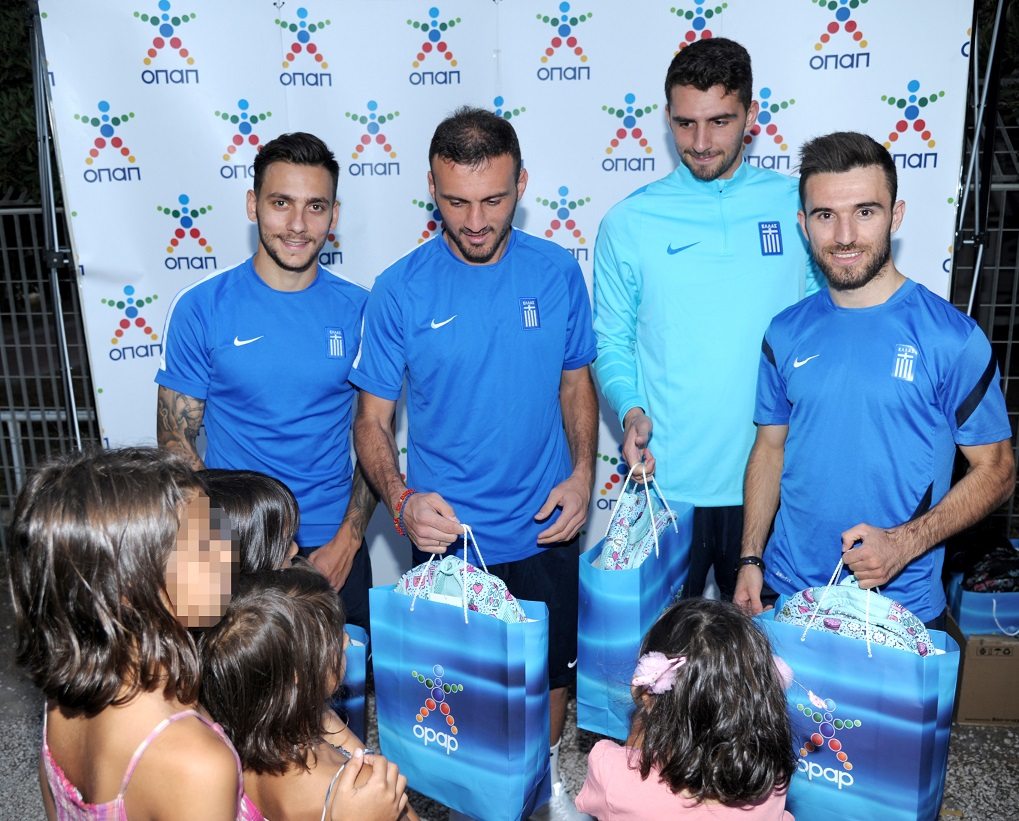 Ο ΟΠΑΠ, Μεγάλος Χορηγός της Εθνικής Ομάδας, οι διεθνείς παίκτες και το προπονητικό team, υποδέχθηκαν τους μικρούς φιλάθλους, στο προπονητικό κέντρο του Αγίου Κοσμά, την Τρίτη 29 Αυγούστου. Τα παιδιά ήταν οι μοναδικοί θεατές στην κλειστή προπόνηση του αντιπροσωπευτικού μας συγκροτήματος, ενόψει των δύο αγώνων με την Εσθονία και το Βέλγιο, αύριο και την Κυριακή, για τα προκριματικά του Μουντιάλ.