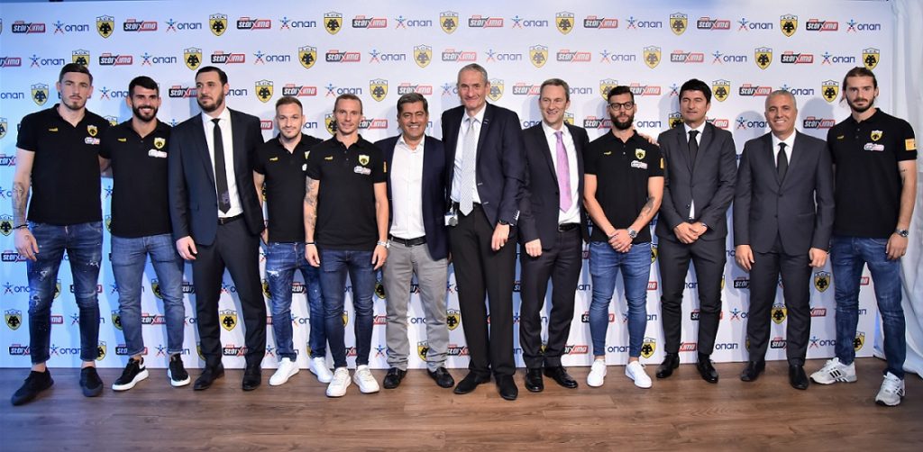 Η διοίκηση του ΟΠΑΠ και της ΠΑΕ ΑΕΚ με τον προπονητή και ποδοσφαιριστές της ομάδας
