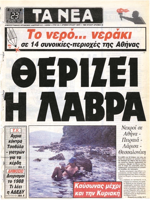Ο καύσωνας, με μέση θερμοκρασία τους 43 βαθμούς Κελσίου (32 το βράδυ), υποχώρησε από την όγδοη ημέρα με οδυνηρό απολογισμό θυμάτων, αλλά και μια δυσοίωνη αίσθηση για το μέλλον. Η Αθήνα είχε αποδειχθεί πόλη «ανοχύρωτη» απέναντι σε προκλήσεις που δεν μπορούσε κανείς καν να ονομάσει. Το φαινόμενο εκείνο με όλους τους χαρακτηρισμούς που επέφερε –«θερίζει η λάβρα», «καμίνι», «φονικός καύσωνας»– πέρασε ως ένα σημείο στη συλλογική μνήμη πριν ξεχαστεί, όπως επισημαίνεται στο Λεξικό «Η Ελλάδα στη δεκαετία του ’80» (πρώτη έκδοση Το Πέρασμα, 2010, δεύτερη έκδοση Επίκεντρο, 2014), σε επιστημονική επιμέλεια των καθηγητών Βασίλη Βαμβακά και Παναγή Παναγιωτόπουλου.