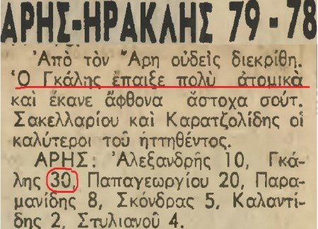 Εκείνο το βράδυ ο (πρωταθλητής) Αρης αντιμετώπιζε τον Ηρακλή, τον οποίο νίκησε «στον πόντο» (79-78). Ο Γκάλης, με το Νο 7 στη φανέλα (το «6» το φόρεσε αργότερα), πέτυχε το καλάθι που άνοιξε το σκορ, κι άλλους 28 πόντους μέχρι το τέλος της αναμέτρησης. Δεν ήταν λίγοι. Αλλά, καθώς ο χρόνος κυλούσε, η αμφιβολία για την αξία του σούτινγκ-γκαρντ που είχε έρθει από τις ΗΠΑ εν χορδαίς και οργάνοις, μεγάλωναν. Ο Νικ, εμφανώς τρακαρισμένος, έχασε πολλά «εύκολα» σουτ, όμως το πιο ανησυχητικό ήταν πως δεν έδινε την μπάλα στους συμπαίκτες του.