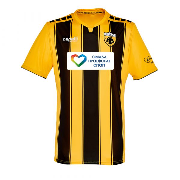 «Στο πλαίσιο της προσπάθειας αποτροπής της εξάπλωσης του φονικού ιού, Covid-19, η ΠΑΕ ΑΕΚ προχώρησε στον σχεδιασμό και την εμπορική διάθεση συλλεκτικής φανέλας ειδικού σκοπού με όλα τα κέρδη από τις πωλήσεις να διατίθενται στις σχετικές δράσεις για δωρεά ιατρικοφαρμακευτικού υλικού.