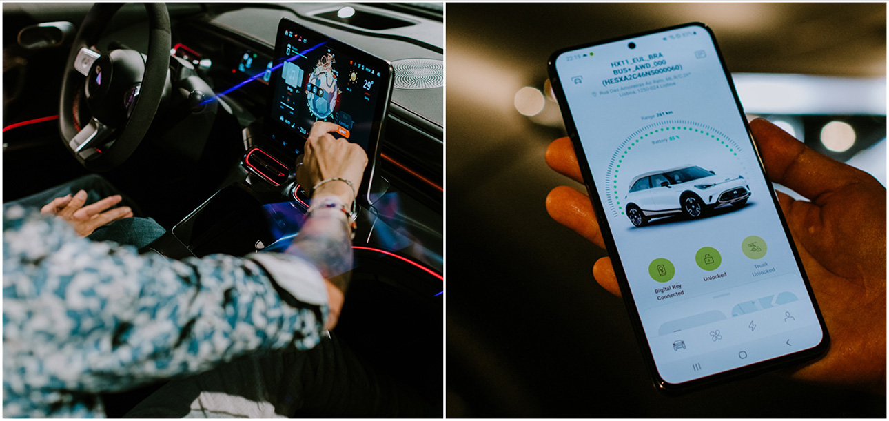 Μπαίνοντας μέσα, στα ευρύχωρα καθίσματα, έχεις μπροστά σου έναν ψηφιακό πίνακα οργάνων φουλ υψηλής ανάλυσης LCD 9,2 ιντσών, ένα head-up display 10 ιντσών και μία κεντρική οθόνη 12,8 ιντσών. Ο συνδυασμός, στο πνεύμα των καιρών, δίνει τη διάσταση υψηλής τεχνολογίας στο εσωτερικό που όλοι περιμένουν από ένα «έξυπνο» αυτοκίνητο.