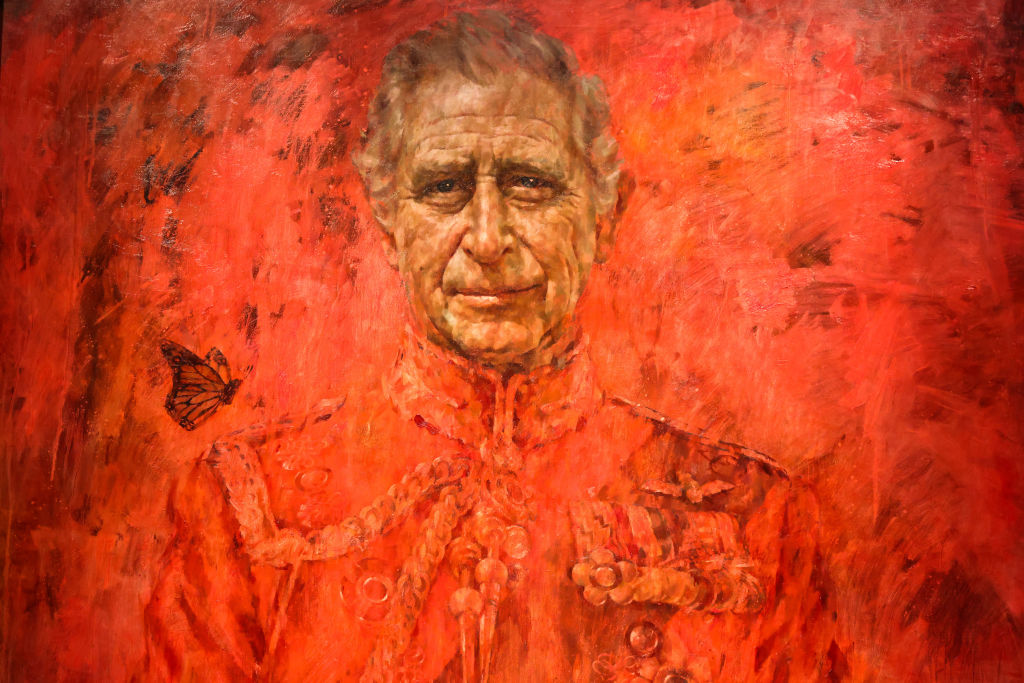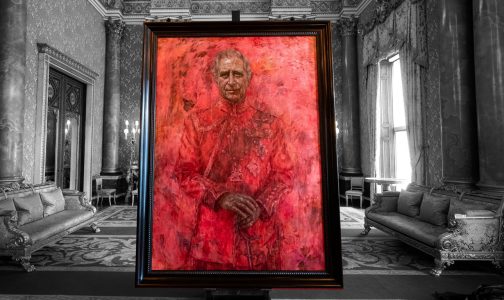 Τα αποκαλυπτήρια της τεράστιας ελαιογραφίας στο παλάτι του Μπάκιγχαμ έκανε ο ίδιος ο Κάρολος, ενώ παρούσα στην τελετή ήταν και η βασίλισσα Καμίλα. Το (διαστάσεων 2,6Χ1,98) έργο απεικονίζει τον βρετανό βασιλιά σε φόντο έντονα κόκκινο, με ροζ και φούξια πινελιές, φορώντας την κόκκινη στολή των Φρουρών της Ουαλίας. Κρατάει στο χέρι του σπαθί και μια πεταλούδα προσγειώνεται στον ώμο του.