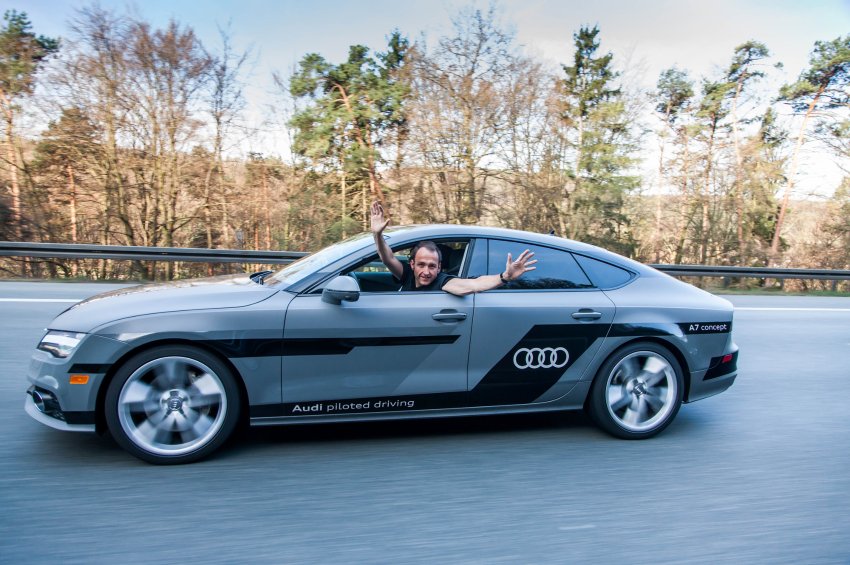 Η εταιρεία με σήμα τα τέσσερα δαχτυλίδια προκάλεσε αίσθηση στις αρχές του 2015, όταν πραγματοποίησε ένα αυτόνομο Α7 τη διαδρομή Σίλικον Βάλεϊ – Λας Βέγκας με πλήρωμα δημοσιογράφους, χωρίς να συμβεί κάτι απρόοπτο. Επίσης έχει λάβει άδεια να δοκιμάζει ρομποτικά οχήματα στον γερμανικό αυτοκινητόδρομο Α9 στο τμήμα μεταξύ των πόλων Ινγκολσταντ και Γκρέντινγκ. Οι μηχανικοί της Audi θεωρούν, ότι θα περάσουν πολλές δεκαετίες μέχρι να ενσωματωθούν πλήρως τα αυτόνομα οχήματα στην κυκλοφορία μέσα σε πόλεις. Ωστόσο το 2017 θα λανσάρει η γερμανική μάρκα το νέο Α8 με δυνατότητα να κινείται αυτόνομα σε πυκνή κυκλοφορία και σε ταχύτητες έως 60 χλμ./ώρα.