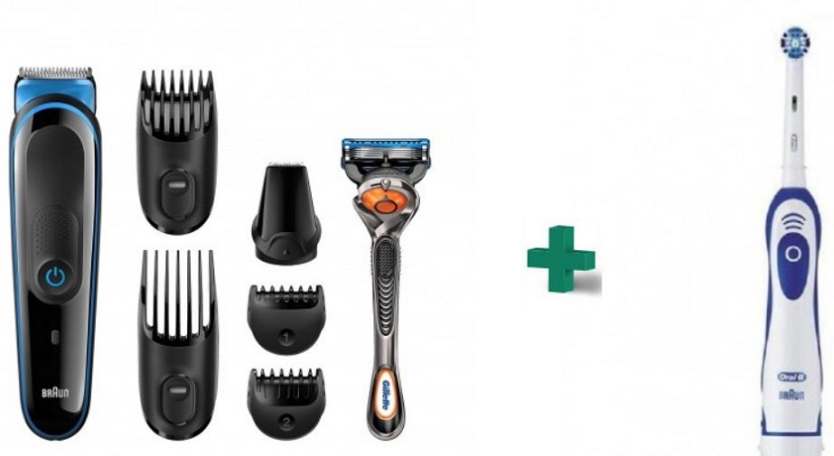 Το πακέτο περιλαμβάνει σετ περιποίησης γενειάδας και μαλλιών Braun MGK3045 με 7 διαφορετικά αδιάβροχα εξαρτήματα και αυτονομία 60 λεπτών με μόνο μία πλήρη φόρτιση (8 ώρες), και ηλεκτρική οδοντόβουρτσα Oral-B Advance Power με περιστρεφόμενο άκρο για πιο αποτελεσματική αφαίρεση της πλάκας από τις επιφάνειες των δοντιών και ένα σταθερό άκρο με διασταυρούμενες ίνες για πιο αποτελεσματικό καθαρισμό των διαστημάτων ανάμεσα στα δόντια.