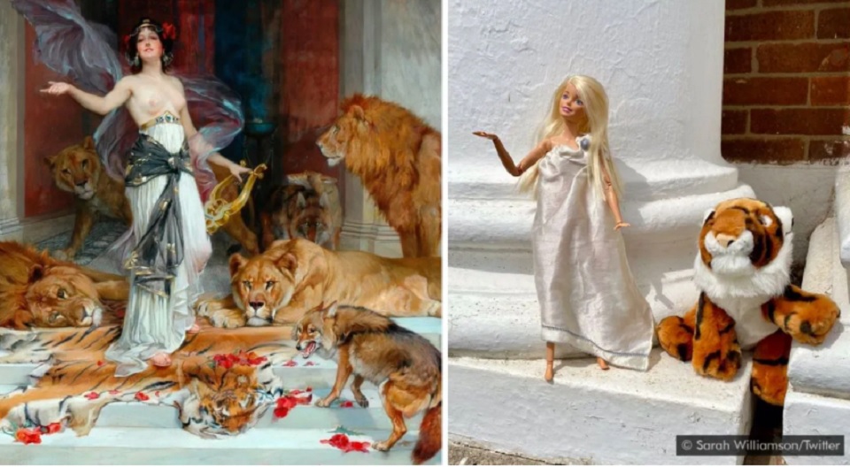 Σε μια ανάρτηση στο Twitter, η ArtActivistBarbie παρωδεί την «Κίρκη» του Ράιτ Μπάρκερ (1889) που απεικονίζει μια γυναίκα γυμνή από τη μέση και πάνω ανάμεσα σε λιοντάρια: «“Θα ήθελα μια σαγηνευτική νεαρή ομορφιά, ημίγυμνη, περιορισμένη και με κάποιο μεγάλο παιχνίδι”, είπε ο αφέντης», γράφει στο post, «“Τι θα λέγατε για την Κίρκη με πέντε έξι τίγρεις;” είπε ο καλλιτέχνης, “Ο καθένας θα θαυμάσει το ακαδημαϊκό σας ενδιαφέρον για την ελληνική μυθολογία”». Και με τη γλώσσα της σταθερά στο μάγουλό της, η ArtActivistBarbie ρωτάει αν αυτή είναι η απεικόνιση μιας κλασικής σκηνής ή ενός καλυμμένου με πέπλα βικτωριανού πορνό…