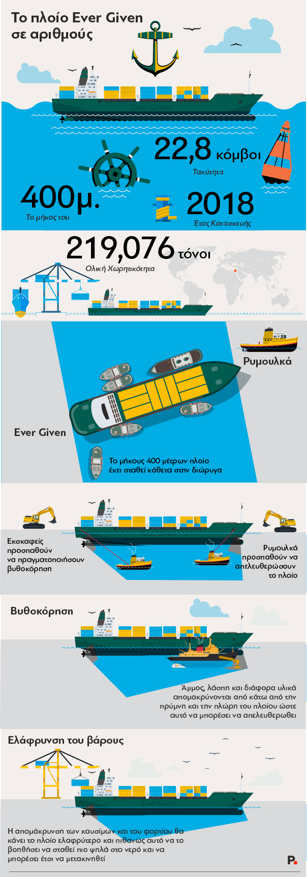 «Πάνω στην άμμο έχει πέσει ένα τεράστιο βάρος» λέει ο Πίτερ Μπερντόφσκι, διευθύνων σύμβουλος της Boskalis. Σύμφωνα με τα στελέχη της εταιρείας θα χρειαστεί ένα συνδυασμός ενεργειών για να επιτευχθεί η απελευθέρωση όπως βυθοκόρηση, ρυμούλκηση και αφαίρεση βάρους από το πλοίο. Μεγάλα μηχανήματα συλλέγουν υλικά από τον πυθμένα του καναλιού και τα εναποθέτουν στην ακτή. Μέχρι το 2015 πλοία του μεγέθους του Ever Given δεν μπορούσαν να περάσουν από την Διώρυγα του Σουέζ αλλά τότε έγιναν εργασίες διαπλάτυνσης.