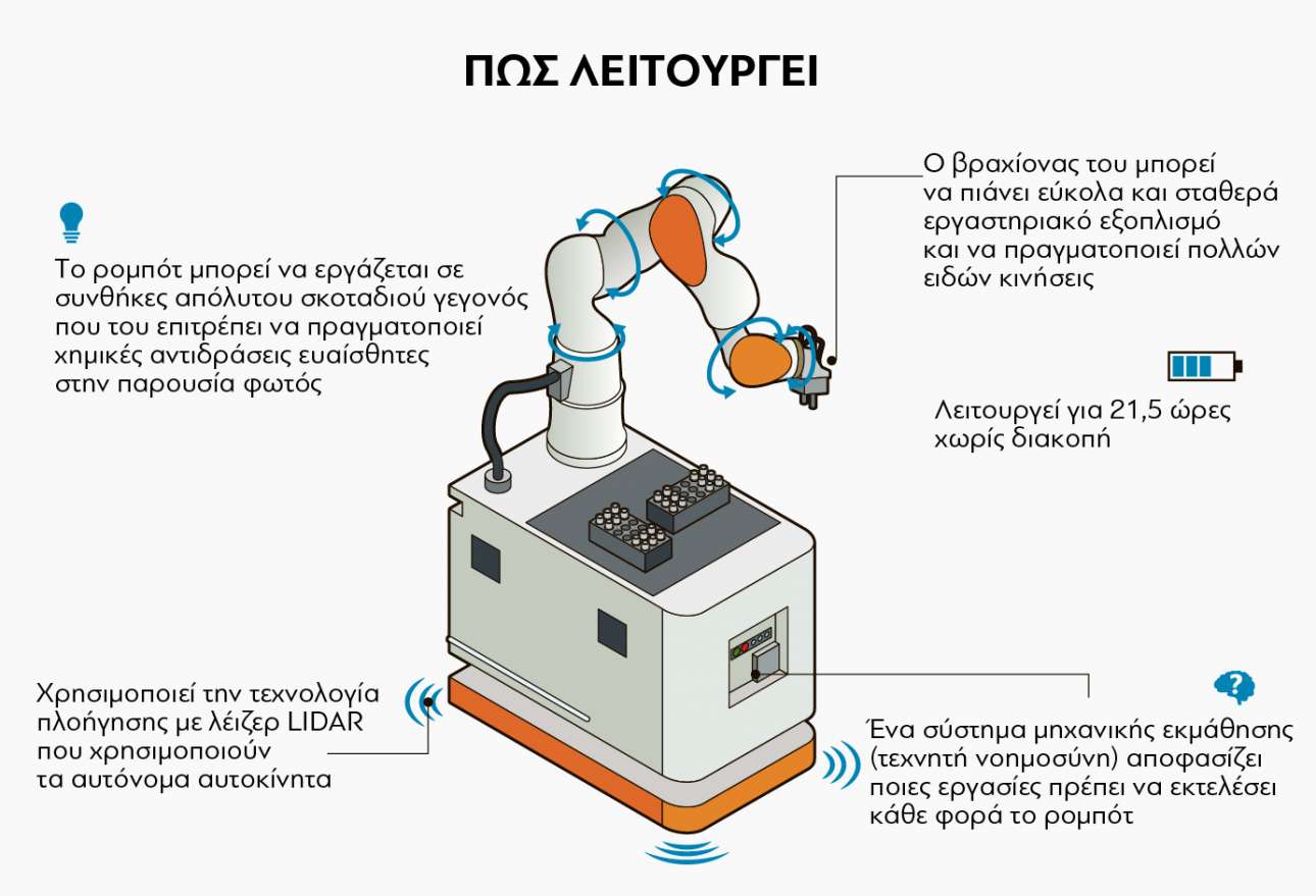 Ονομάζεται KUKA-1, και είναι ένα ρομπότ που κατασκεύασαν ερευνητές του Πανεπιστημίου του Λίβερπουλ. Το ρομπότ μπορεί να εκτελεί απολύτως μόνος του χωρίς καμία βοήθεια δεκάδες εργασίες μέσα σε ένα εργαστήριο αποφασίζοντας μάλιστα το ίδιο την σειρά με την οποία θα τις κάνει για να έχει καλύτερο αποτέλεσμα.