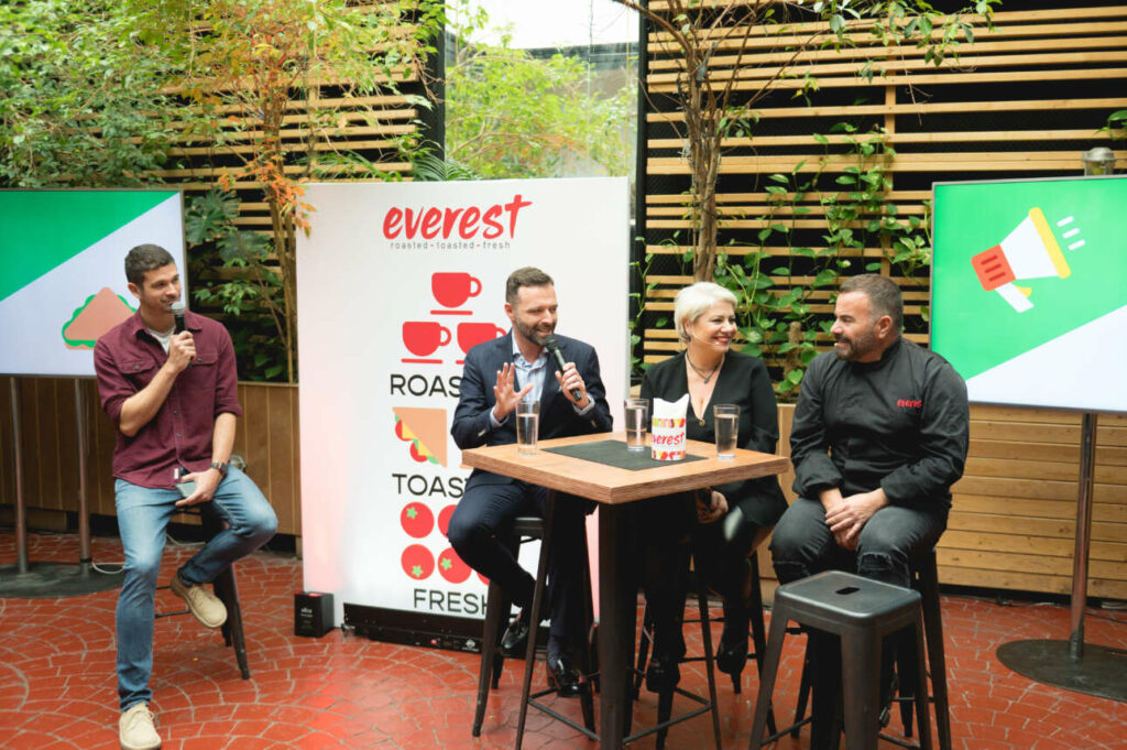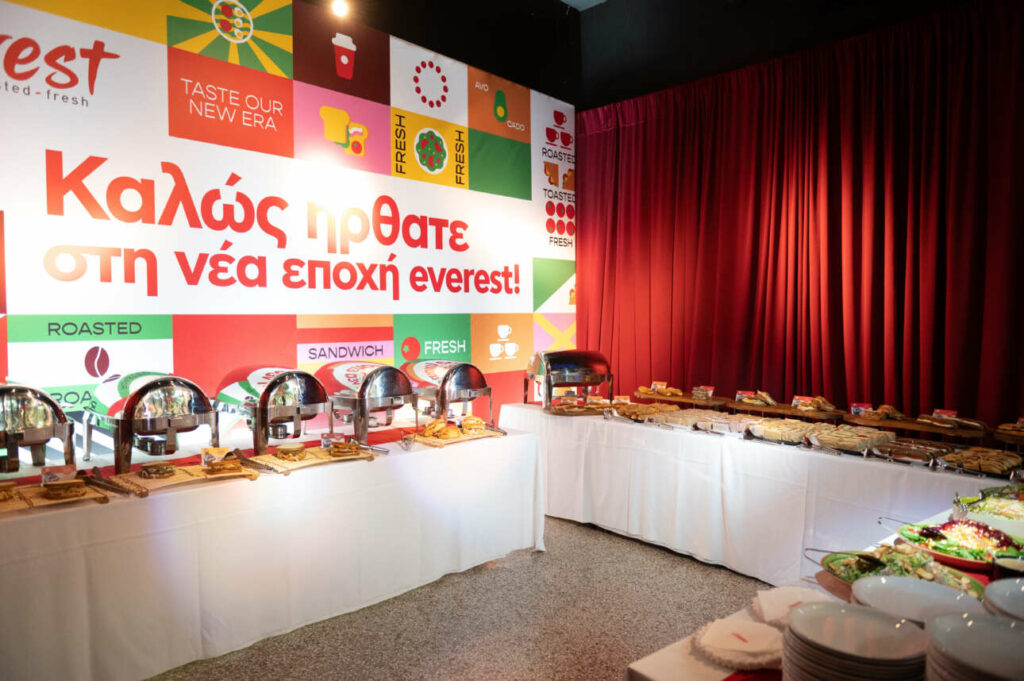 Η ημέρα στο Φουάρ είχε απ’ όλα: λίγο από νοσταλγία, μέσα από τις αναμνήσεις της Αθήνας των ’80s και το πρώτο, ιστορικό κατάστημα everest στο Κολωνάκι, λίγο από έμπνευση, μέσα από τις διηγήσεις της ομάδας που σχεδίασε την ανανέωση της μάρκας, και πολλή απόλαυση, μέσα από τη δοκιμή των νέων πρωτότυπων και δημιουργικών γεύσεων του »street food guru» και brand ambassador των everest, chef Βασίλη Καλλίδη. Ανάμεσά τους, η λαχταριστή γεμιστή κουρού, τα hot bagels, οι εμπλουτισμένες πολύχρωμες σαλάτες και τα κρύα sandwiches, τα οποία ενθουσίασαν τους καλεσμένους. Και φυσικά, οι παρευρισκόμενοι είχαν την ευκαιρία να απολαύσουν έναν μοναδικό/υπέροχο καφέ φτιαγμένο από τον Head Barista Trainer των everest, Σταύρο Λαμπρινίδη, AST Authorised SCA Trainer Coffee Consultant & WCIC World Cezve Ibrik Champion 2014.