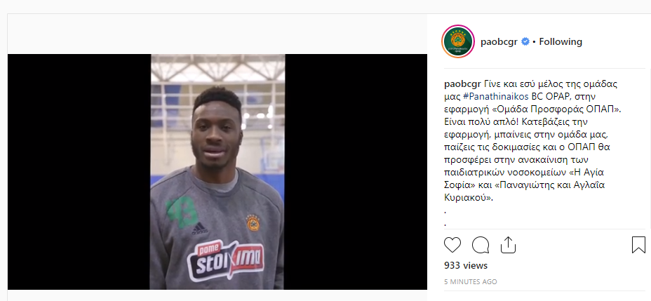Νικ Καλάθης, Κιθ Λάνγκφορντ και Θανάσης Αντετοκούνμπο δεν πρωταγωνιστούν μόνο στα παρκέ, αλλά και στις δοκιμασίες της «Ομάδας Προσφοράς ΟΠΑΠ». Οι παίκτες του Παναθηναϊκού ΟΠΑΠ άφησαν για λίγο το παιχνίδι με την μπάλα και άρχισαν να παίζουν στη διαδραστική εφαρμογή, ώστε να συμβάλουν στην ανακαίνιση των παιδιατρικών νοσοκομείων «Η Αγία Σοφία» και «Παναγιώτης & Αγλαΐα Κυριακού». Σε αυτό τον «αγώνα» θέλουν στο πλευρό τους και τους φιλάθλους του Παναθηναϊκού, τους οποίους καλούν μέσω των social media να κάνουν download την εφαρμογή «Ομάδα Προσφοράς ΟΠΑΠ» και να μπουν στην ομάδα #Panathinaikos BC OPAP.