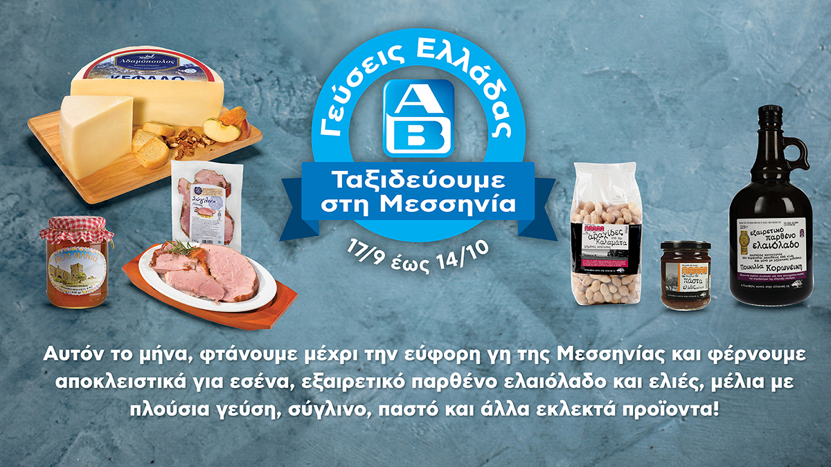 Και μην ξεχνάτε: οι Γεύσεις Ελλάδας πάνε στη Μεσσηνία έως τις 14 Οκτωβρίου και εμείς πάμε στα καταστήματα ΑΒ, για να τις ανακαλύψουμε και να τις απολαύσουμε!