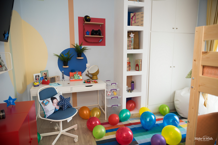 Ο δεκάχρονος Χρυσόστομος ξέσπασε σε επιφωνήματα χαράς όταν είδε για πρώτη φορά το νέο του υπνοδωμάτιο, τα χαρούμενα χρώματα που πλημμυρίζουν το χώρο, το διώροφο κρεβάτι, τη στριφογυριστή καρέκλα και τα δώρα για τον ίδιο και την ξαδέλφη του. Όσο για τα ποδοσφαιρικά αξεσουάρ, πήραν αμέσως θέση στην αυλή.