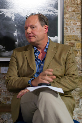 Ο Ασάνζ εμφανίστηκε στην κεντρική αίθουσα της έπαυλης με το που τελείωσε η φωτογράφιση. Ηταν χαρούμενος και ευγενικός – ακόμα και όταν ρωτήθηκε πού γεννήθηκε στον Καναδά, ενώ είχε γεννηθεί στην Αυστραλία και ήδη αυτό ήταν ευρέως γνωστό, δεν απάντησε ειρωνικά, απλά μας διόρθωσε λέγοντας ότι κατάγεται από την κάτω πλευρά του πλανήτη. Η συζήτηση που ξεκίνησε ήταν «εθιμοτυπική»: τι είναι όλα αυτά τα κάδρα (στρατιωτικοί-πρόγονοι του Σμιθ που του είχε παραχωρήσει την έπαυλη), πώς είναι η κατάσταση στην Ελλάδα (σε κρίση), τι κυκλοφορία έχει η εφημερίδα (γύρω στις 45.000 – 50.000 το καθημερινό φύλλο), πώς περνάει τη μέρα του ενώ βρίσκεται σε κατ’ οίκον περιορισμό (κοντά σε έναν υπολογιστή συντονίζοντας τα τηλεγραφήματα), τι βλέπει για το μέλλον (νέες διαρροές και αποκαλύψεις).