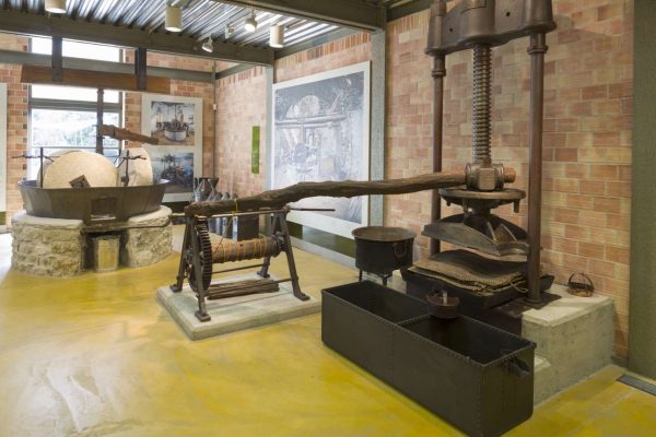 Το νοερό ταξίδι συνεχίζεται στη Λέσβο και στο Μουσείο Βιομηχανικής Ελαιουργίας του ΠΙΟΠ, που προβάλλει τη βιομηχανική φάση της ελαιουργίας στην Ελλάδα. Το Κοινοτικό Ελαιοτριβείο της Αγίας Παρασκευής (γνωστό ως «Μηχανή του Κοινού»), που αποκατεστημένο σήμερα στεγάζει το Μουσείο, υπήρξε πρωτοβουλία των κατοίκων της περιοχής. Ξεκίνησε στις αρχές του 20ού αιώνα και είχε στόχο, εκτός από τη βελτίωση της παραγωγής του ελαιολάδου, την ανάπτυξη της κοινότητας μέσω της διαχείρισης των κερδών του ελαιοτριβείου, με ευεργετικά αποτελέσματα για τον κοινωνικό ιστό και τις υποδομές της περιοχής.
