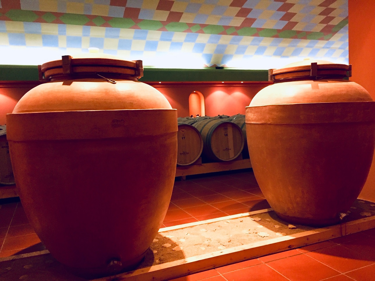 Στα κελάρια υπάρχουν δρύινα βαρέλια παλαίωσης των 220lt αλλά και πήλινα πιθάρια, αντίγραφά των αμφορέων στα κελάρια του βασιλιά Νέστορα, στα οποία (με τις πληροφορίες που έχουν διασωθεί) φτιάχνεται κρασί από τις ίδιες ποικιλίες και διαδικασίες που χρησιμοποιούσαν στο αρχαίο ανάκτορο.