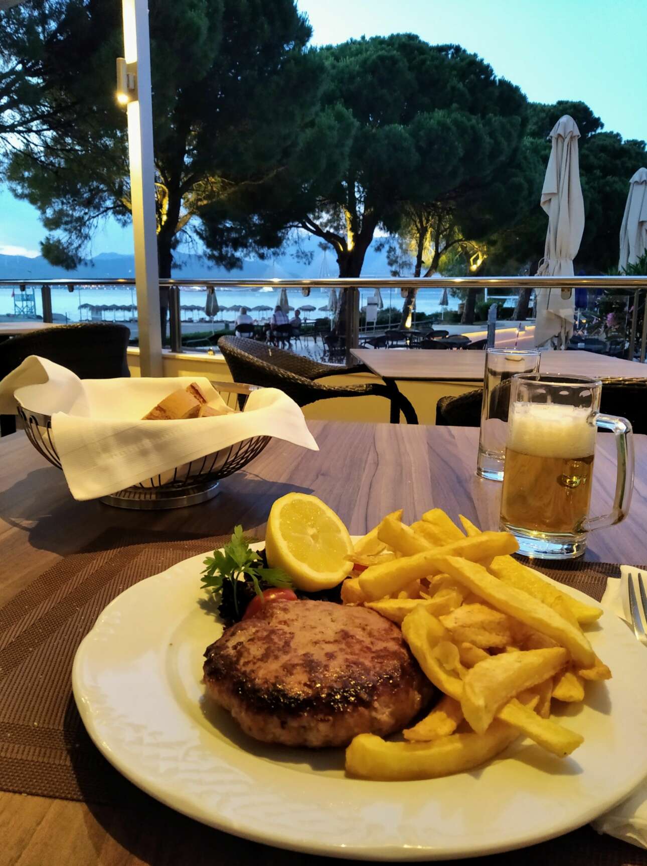 Εμεινα κυριολεκτικά ακίνητη σε αυτή την πολύ μεγάλη «πλατεία» (έτσι μου φάνηκε) με τις δύο πισίνες και την υπέροχη θέα. Ηπια τον καφέ μου στο Pool Βar και όταν βράδιασε έφαγα ένα (καταπληκτικό) μπιφτέκι με (αληθινές) τραγανές και ζουμερές τηγανητές πατάτες στη βεράντα του «Θέα», απολαμβάνοντας μια παγωμένη μπίρα, και τη γέφυρα, βεβαίως, από την οποία δεν μπορούσε να ξεκολλήσει το βλέμμα μου, όσο έμεινα στο Porto Rio.