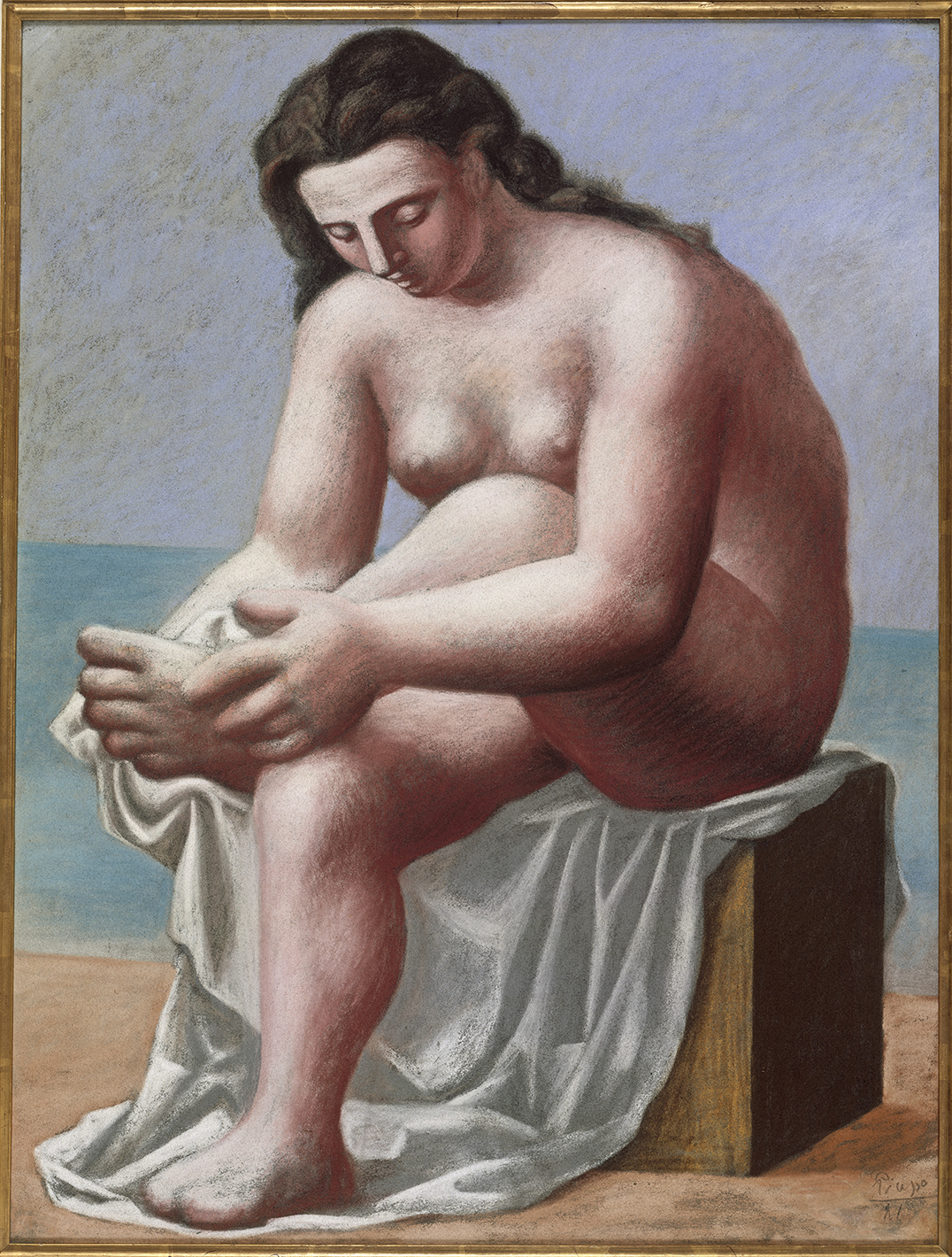 Το έργο του Πάμπλο Πικάσο «Καθισμένο γυμνό σκουπίζει το πόδι του». Στη δεκαετία του 1920 ο Πικάσο είχε στραφεί προς τον κλασικισμό. Στο έργο αυτό όμως ο Πικάσο είχε εισάγει και κάποια στοιχεία που ξέφευγαν από την παράδοση. Στο φόντο υπάρχουν διαφορές στο ύψος του ορίζοντα, ενώ τα άκρα χαρακτηρίζονται από ακρομεγαλία.