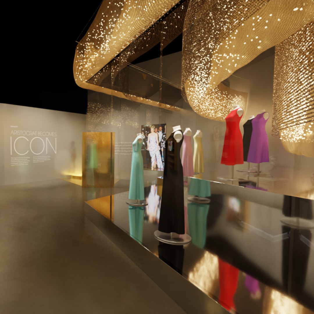 Η έκθεση συνδυάζει την ψυχαγωγία του Λας Βέγκας με την μεγαλύτερη συλλογή αντικειμένων της Νταϊάνα και βασιλικών αναμνηστικών. Σε μια επιφάνεια περίπου 930 τμ παρουσιάζονται περισσότερα από 700 εκθέματα, μεταξύ των οποίων πολλά από τα αυθεντικά βραδινά φορέματα και δημιουργίες υψηλής μόδας της Νταϊάνα, καλλιτεχνικές εγκαταστάσεις, ιστορικά βασιλικά αντικείμενα, αλληλογραφία, δώρα και άλλα προσωπικά αντικείμενα της πριγκίπισσας και άλλων μελών της βασιλικής οικογένειας.